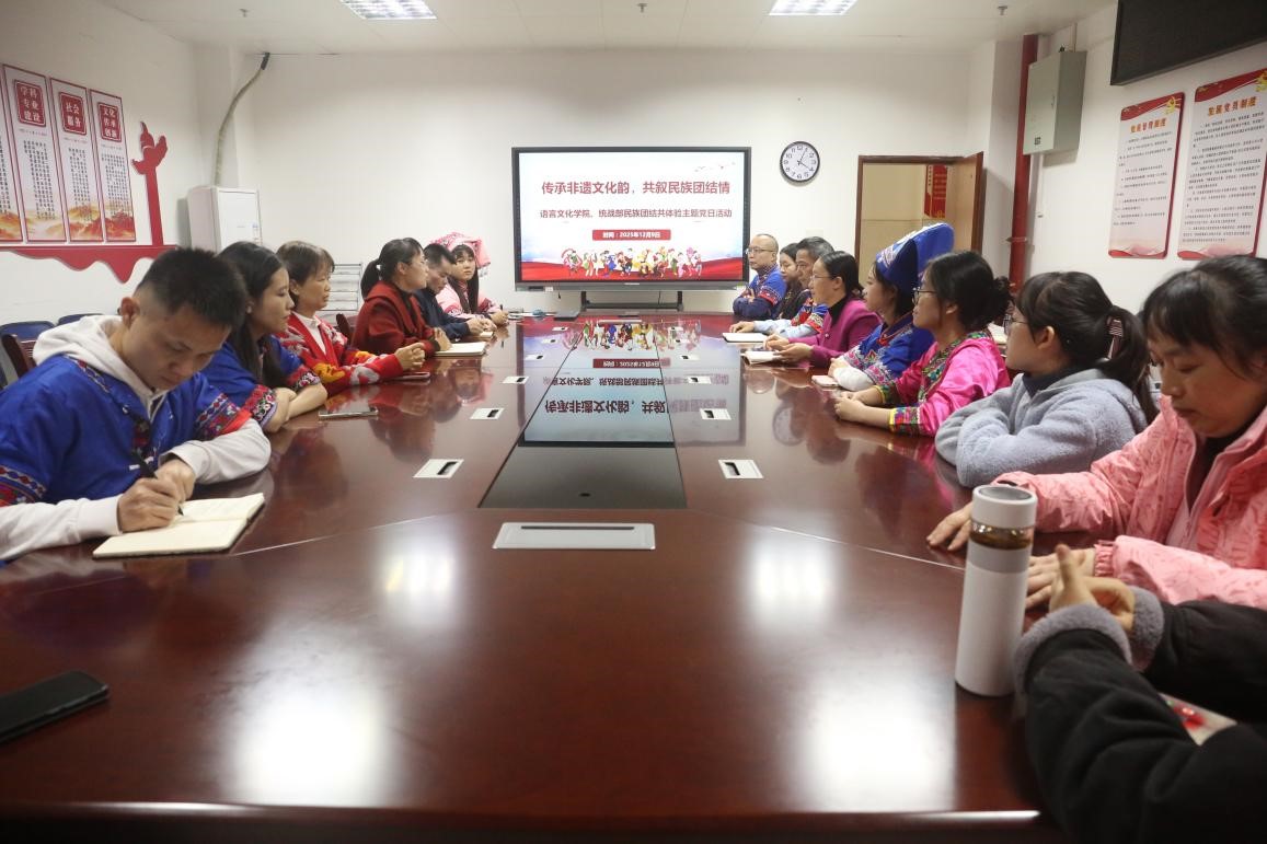2025年12月9日下午,betway必威西汉姆联与学校党委统战部在国教综合楼党员活动室举办“传承非遗文化韵,共叙民族团结情”非遗文化共体验主题党日活动。学校党委统战部农雁淇副部长、李希老师及betway必威西汉姆联各民族师生代表参加了此次活动。